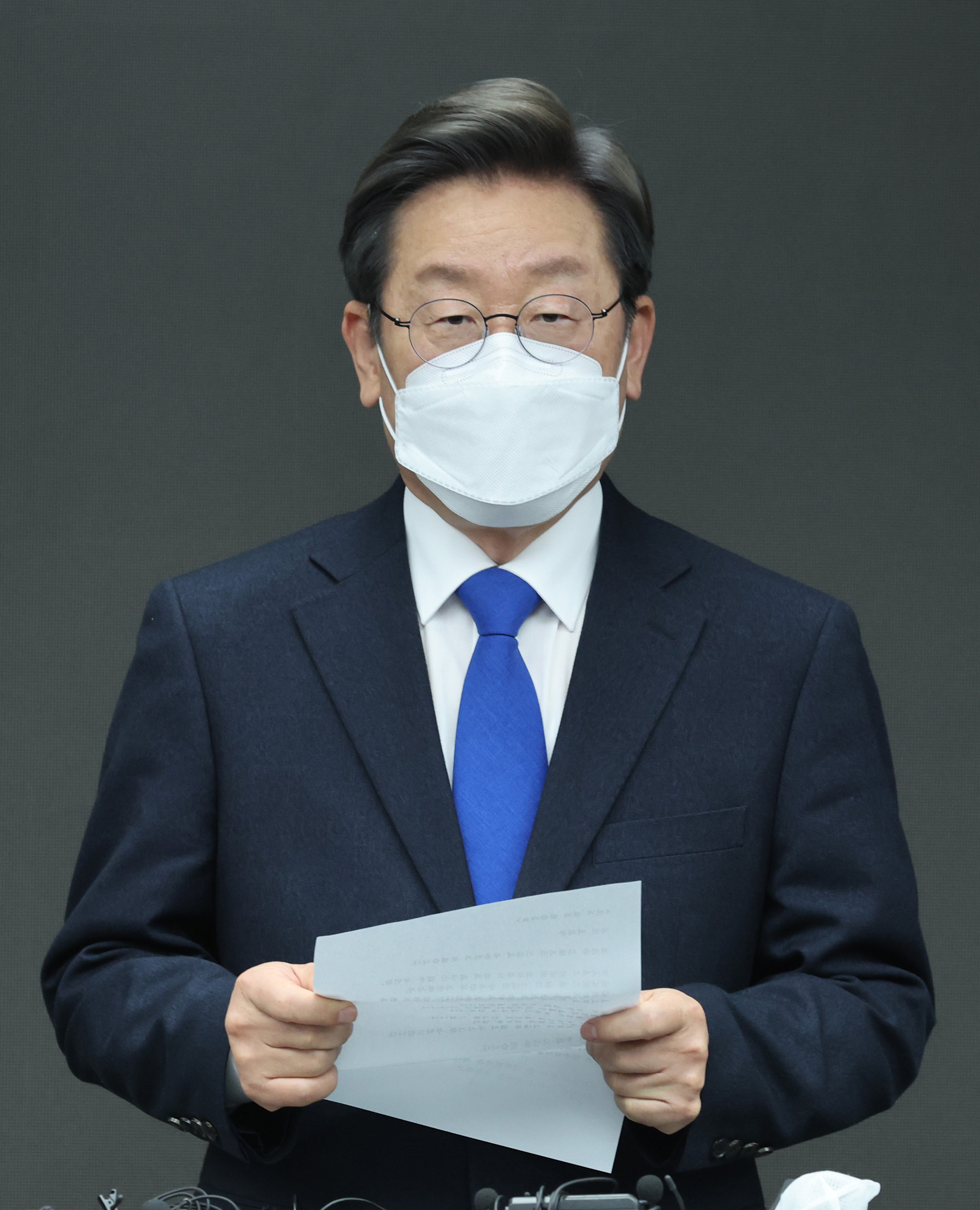 더불어민주당 이재명 대선 후보는 10일 "모든 것은 다 저의 부족함 때문이다. 여러분의 패배도 민주당의 패배도 아니다. 모든 책임은 오롯이 저에게 있다"며 패배를 선언하고 있다.