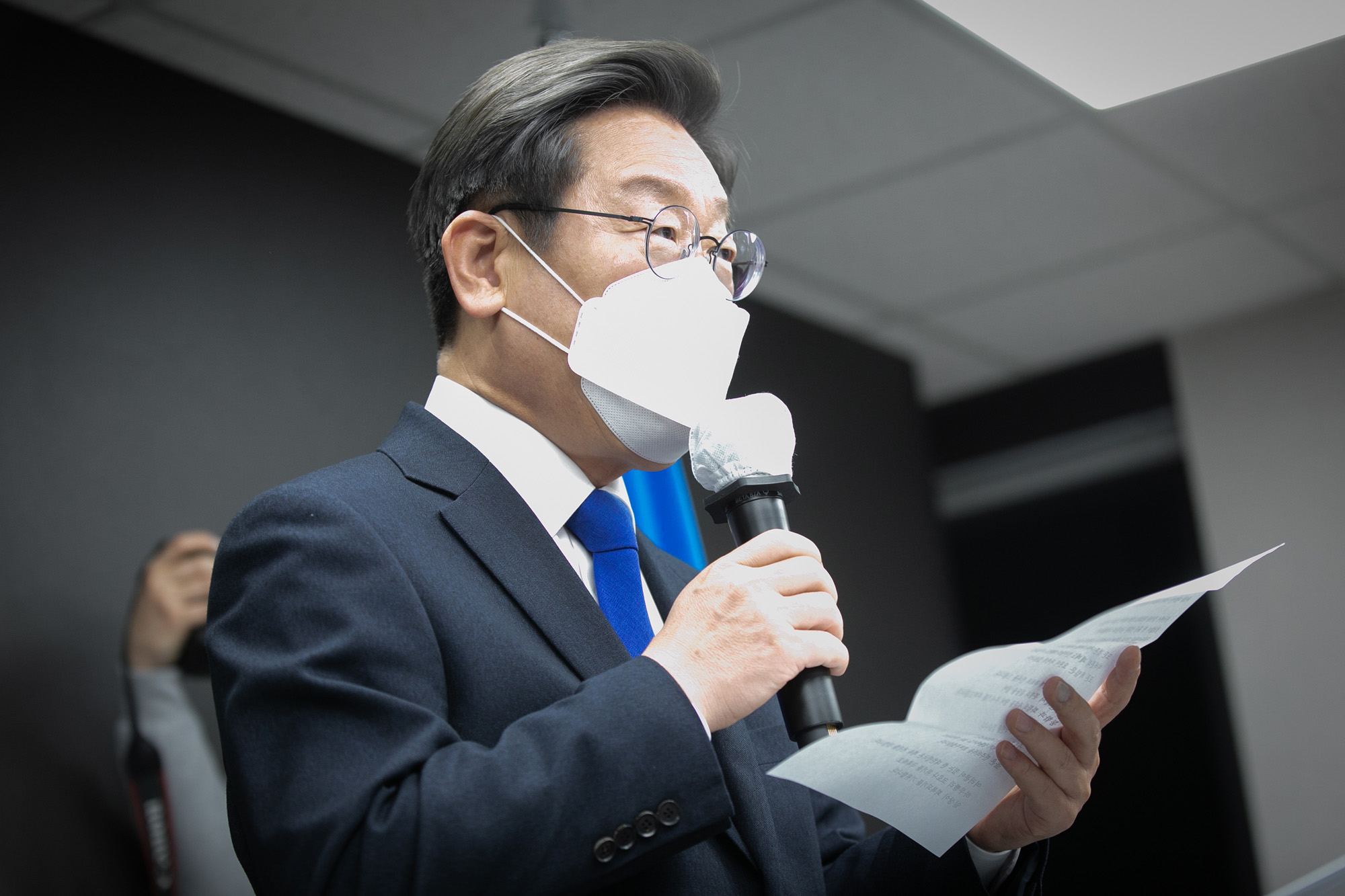 이재명 더불어민주당 대선후보가 10일 새벽 서울 여의도 더불어민주당 당사에서 제20대 대통령선거 패배 승복 기자회견을 열고있다.