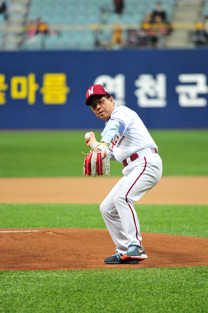 1일 오후 서울 고척스카이돔에서 '2016 타이어뱅크 KBO 리그' 넥센 히어로즈와 롯데 자이언츠의 개막전이 열렸다. 박원순 서울시장이 시구를 하고 있다. 서울시 제공