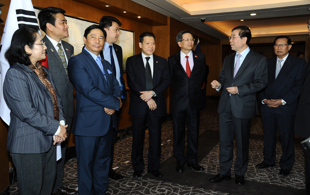 박원순 서울시장이 4일 서울 중구 롯데호텔에서 열린 아세안 대사 모임 초청 오찬 행사에서 인사말을 하고 있다. 서울시 제공