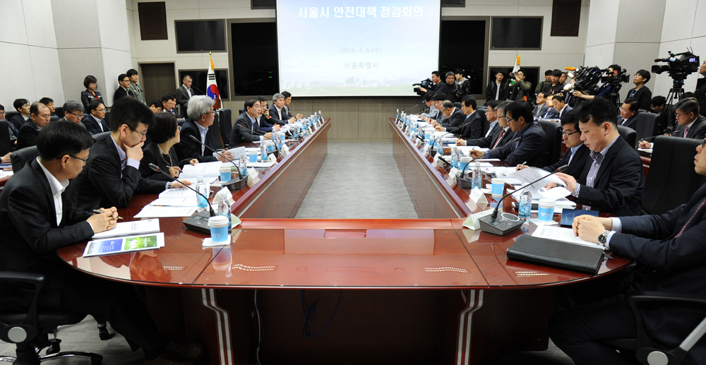 박원순 서울시장이 6일 오전 서울시청 신청사 충무기밀실에서 열린 안전대책 점검회의에서 모두발언을 하고 있다. 박 시장은 세월호 참사 2주기를 맞아 이날 회의에서 지하철 안전사고 등 시민안전 위협 요소를 점검하고 안전 관련 대책을 논의했다. 서울시 제공
