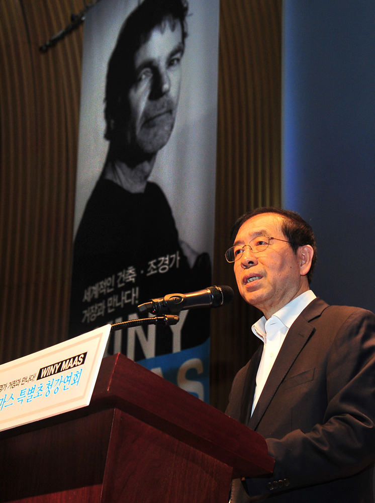 박원순 서울시장이 7일 오후 서울 중구 서울시청 다목적홀에서 열린 '2016 비니마스 특별초청강연회'에 참석해 환영사를 하고 있다. 서울시 제공
