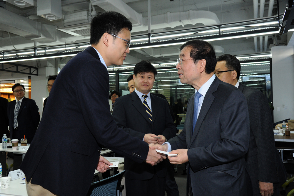 박원순 시장이 18일 오전 서울 강남구 역삼동 팁스타운에서 열린 서울시-핀테크 대표단 서밋에서 인사말을 하고 있다. 서울시 제공