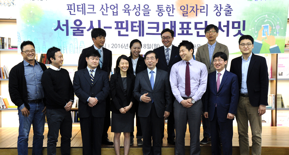 박원순 시장이 18일 오전 서울 강남구 역삼동 팁스타운에서 열린 서울시-핀테크 대표단 서밋에서 인사말을 하고 있다. 서울시 제공
