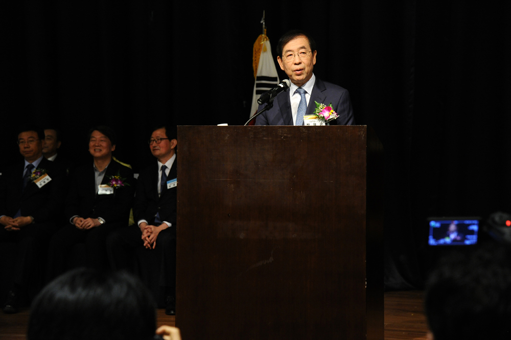 박원순 시장이 24일 오전 더케이 호텔에서 열린 의사협회 제64회 정기대의원총회에 참석해 축사하고 있다. 서울시 제공