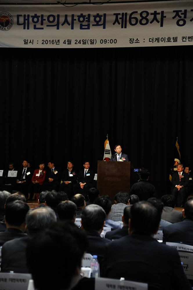 박원순 시장이 24일 오전 더케이 호텔에서 열린 의사협회 제64회 정기대의원총회에 참석해 축사하고 있다. 서울시 제공