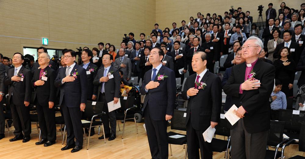 28일 오전 서울 마포구 상암동 푸르메재단 넥슨어린이재활병원에서 열린 개원식에서 박원순 서울시장이 축사를 하고 있다. 서울시 제공