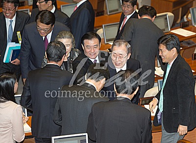 | 사진설명 | [Eoimage=서울] 이종현 기자 = 30일 오전 반기문 UN사무총장이 국회연설을 통해 한국이 국제사회에 기여해야하는 이유와 방법등에 대해 밝히고 협조를 구하고 있다. 반기문 사무총장이 연설을 마치고 강창희 국회의장과 부인 유순택 여사와 함께 국회의원에게 인사하며 퇴장하고 있다. 2012. 10. 30 eomaster@eoimage.com |