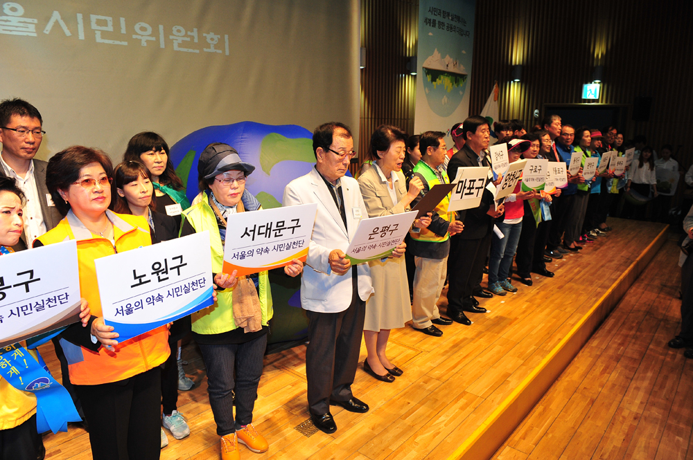 2일 오전 서울 중구 서울시청 다목적홀에서 열린 'C0₂1인 1톤 줄이기를 위한 서울의 약속 시민실천단협의회 발대식'에서 박원순 서울시장이 격려사를 하고 있다. 서울시 제공