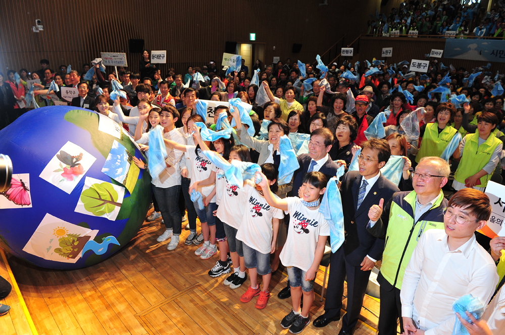 2일 오전 서울 중구 서울시청 다목적홀에서 열린 'C0₂1인 1톤 줄이기를 위한 서울의 약속 시민실천단협의회 발대식'에서 박원순 서울시장이 격려사를 하고 있다. 서울시 제공