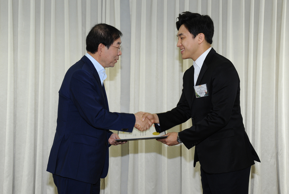 어린이날인 5일 오전 서울 중구 서울시청 서소문별관에서 열린 '제94회 어린이날 기념행사, 2016년 서울특별시 어린이 및 청소년상 시상식'에서 박원순 서울시장이 참석 어린이에게 시상을 하고 있다. 서울시는 5월 청소년의 달을 기념해 타의 모범이 되는 어린이 및 청소년과 청소년 보호, 육성에 공헌한 청소년 지도자 및 단체에 대해 '서울특별시 어린이 및 청소년상'을 수여하고 있다. 서울시 제공 |