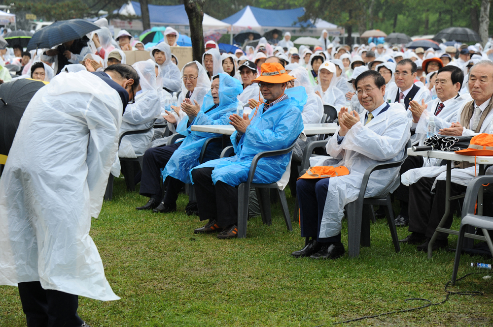 박원순 서울시장이 6일 오전 서울 용산구 용산가족공원 제2광장에서 열린 '제44회 어버이날 기념행사 사랑합니다, 고맙습니다'에서 축사를 하고 있다. 서울시 제공