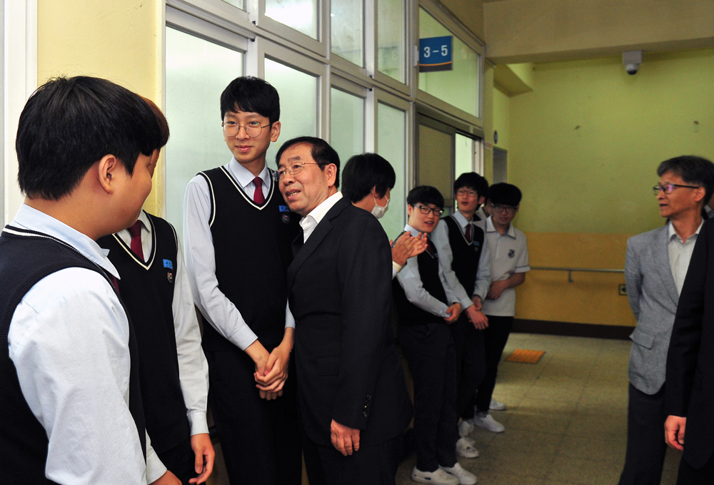 박원순 서울시장이 11일 서울 강서구의 화원중학교를 찾아 특강하고 있다. 서울시 제공