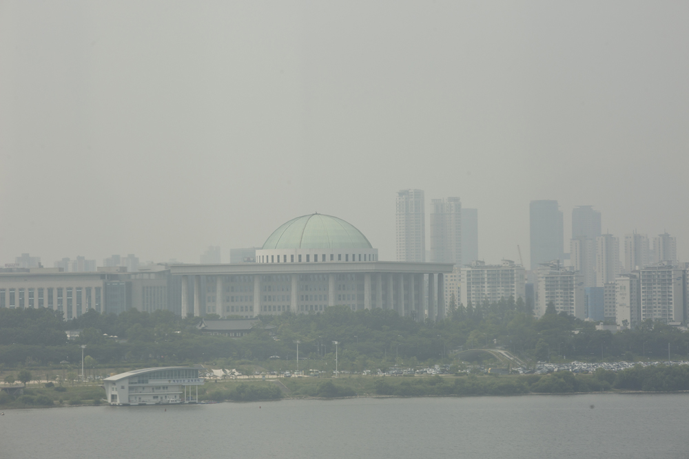 31일 오전 미세먼지 나쁨 상태의 국회 전경 스케치.