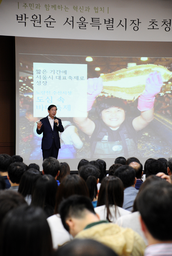 박원순 서울시장이 30일 서울 동작구청에서 특별강연을 하고 있다. 서울시 제공