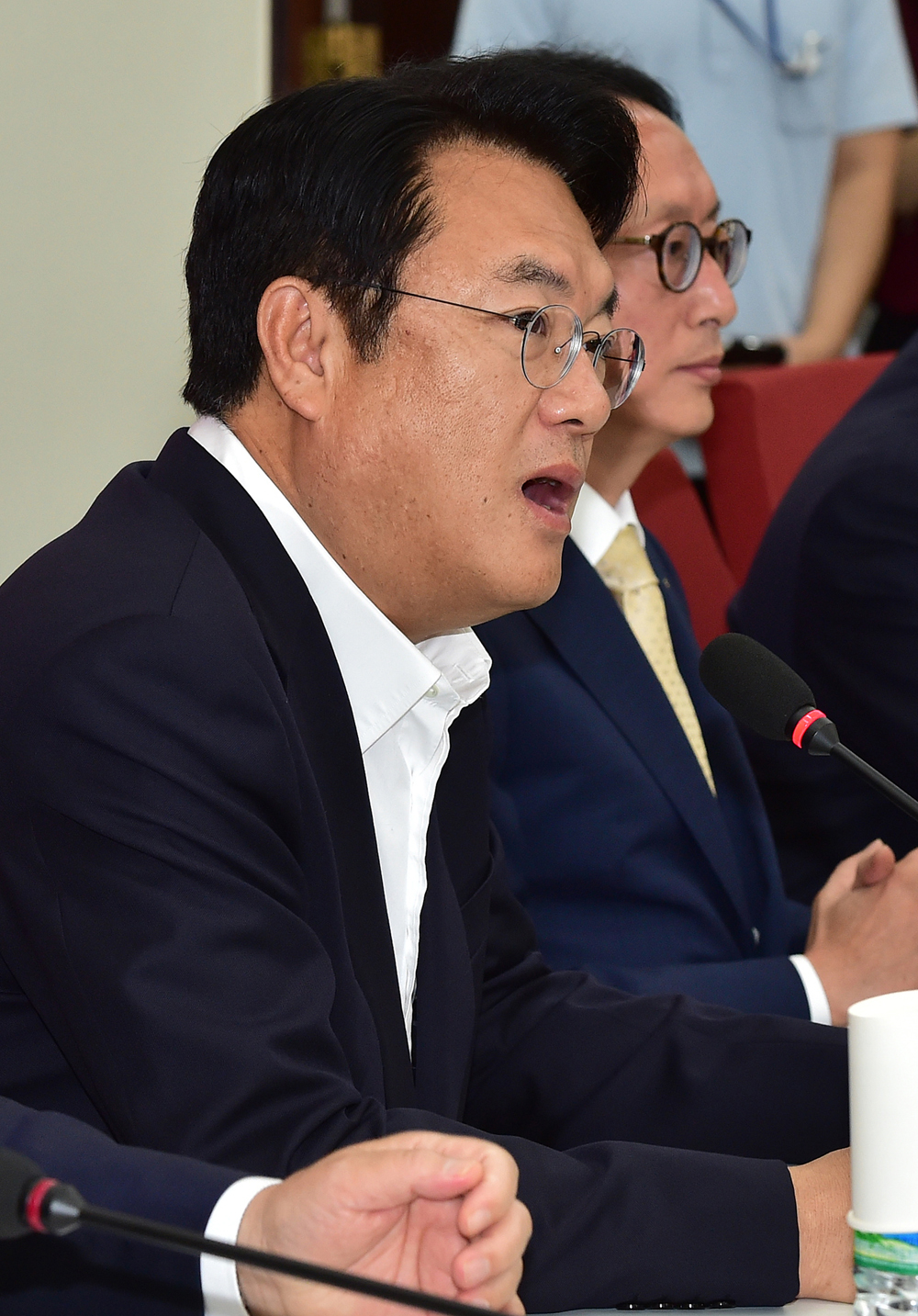 정진석 새누리당 원내대표가 8일 국회에서 열린 원내대책회의에서 국회의장 자유투표 선출 주장에 대해 "국회는 여야 간의 대화와 타협을 통해 원 구성을 했던 오랜 전통과 관행을 갖고 있다"며 "협치와 대타협의 새로운 국회 환경에 비춰 볼 때 올바른 출발이 아니다"고 강조하고 있다.2016.06.08