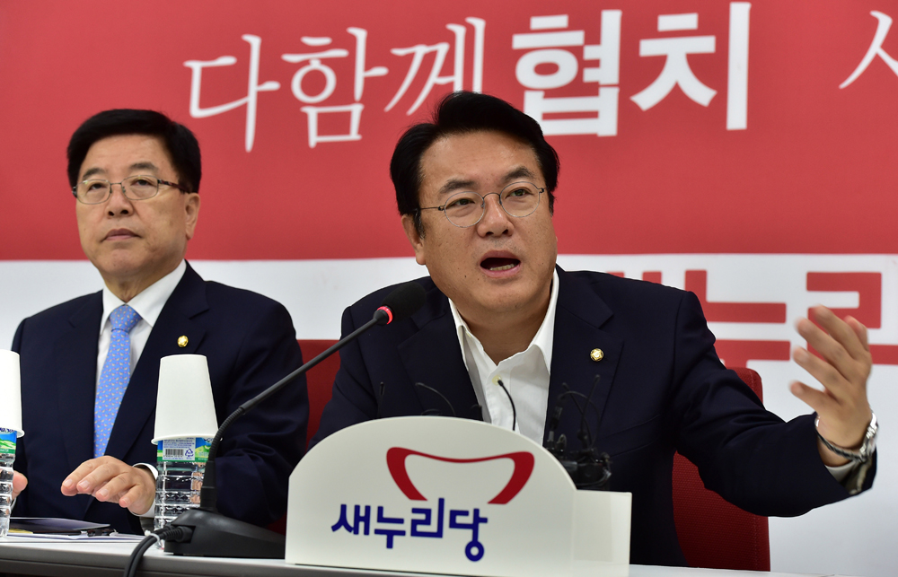 정진석 새누리당 원내대표가 8일 국회에서 열린 원내대책회의에서 국회의장 자유투표 선출 주장에 대해 "국회는 여야 간의 대화와 타협을 통해 원 구성을 했던 오랜 전통과 관행을 갖고 있다"며 "협치와 대타협의 새로운 국회 환경에 비춰 볼 때 올바른 출발이 아니다"고 강조하고 있다. 2016.06.08