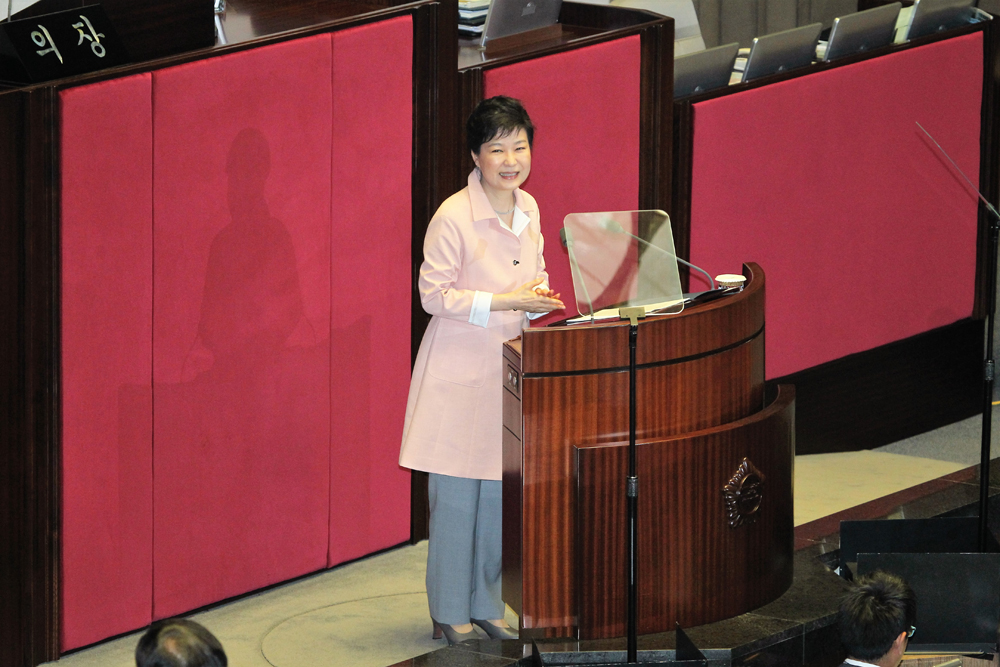 13일 서울 여의도 국회 본회의장에서 열린 20대 국회 개원식에서 박근혜 대통령이 축하연설에 앞서 인사하고 있다. 2016.06.13 일요서울 정대웅 기자