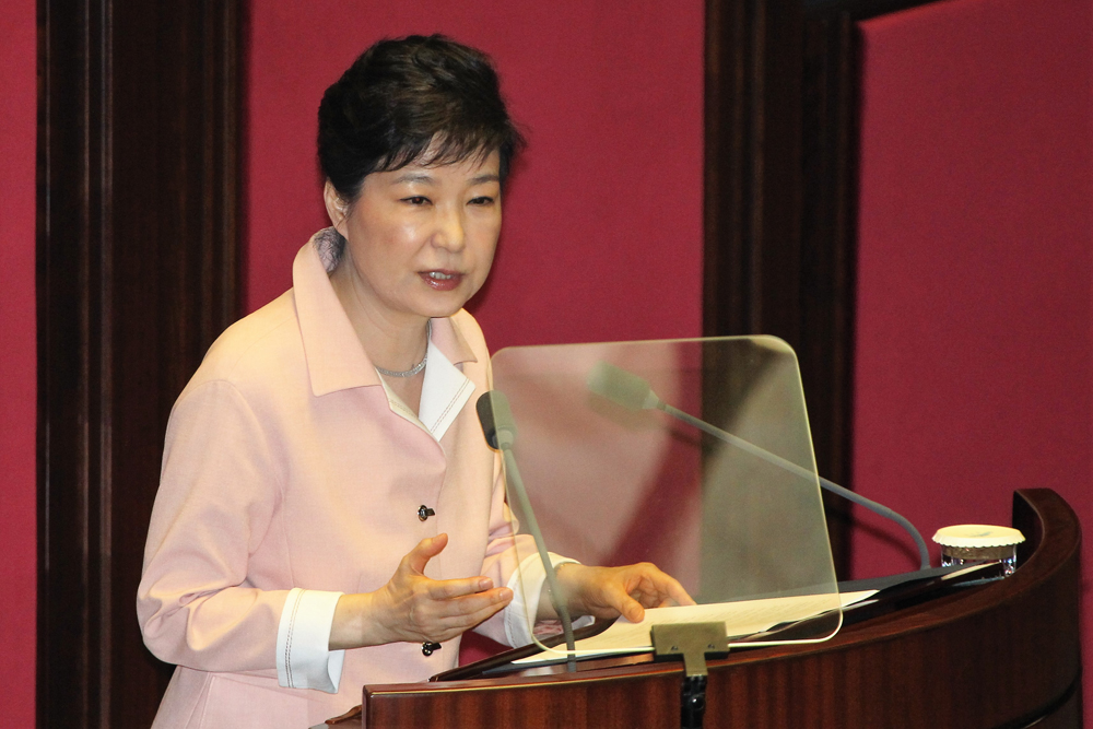 13일 서울 여의도 국회 본회의장에서 열린 20대 국회 개원식에서 박근혜 대통령이 축하연설을 하고 있다. 2016.06.13 일요서울 정대웅 기자