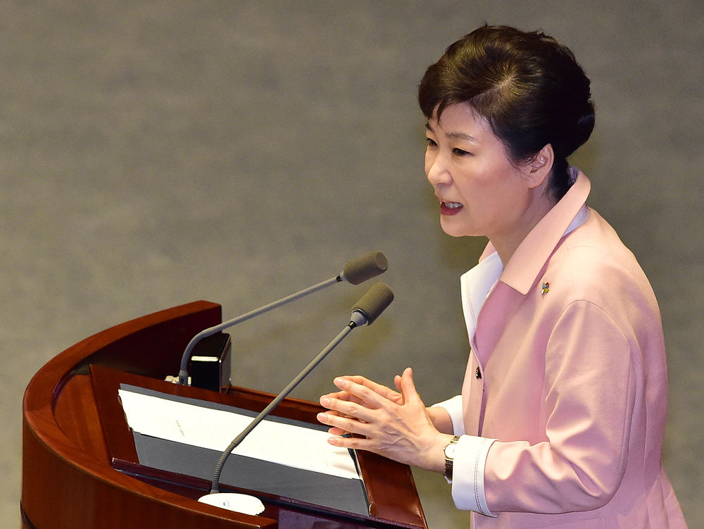 아시아투데이 이병화 기자 = 박근혜 대통령이 13일 오전 국회 본회의장에서 열린 '제20대 국회 개원식'에서 개원연설을 하고 있다. /이병화 기자photolbh@