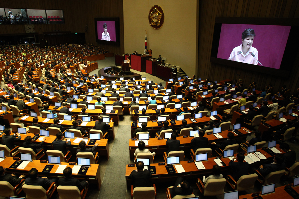 박근혜 대통령이 20대 국회 개원일인 13일 오전 국회 본회의장에서 개원연설을 하고 있다.