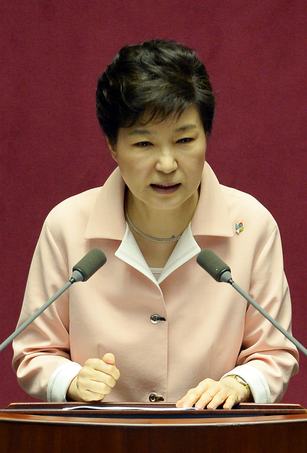 [더팩트│국회=임영무 기자]박근혜 대통령이 13일 오전 서울 여의도 국회 본회의장에서 열린 제20대 국회 개원식에서 연설을 하고 있다.