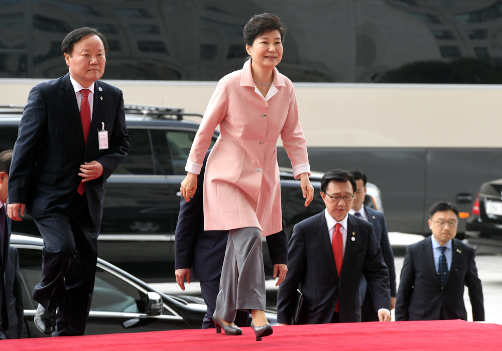 박근혜 대통령이 20대 국회 개원식이 열리는 13일 오전 개원 연설을 하기 위해 여의도 국회 본청에 들어서고 있다.
