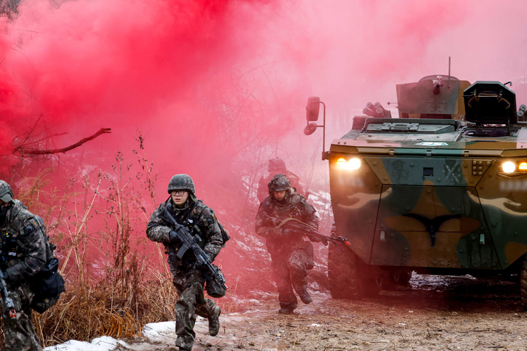 13일 경기 파주 무건리훈련장에서 열린 '아미타이거 시범여단 연합훈련'에서 육군 아미타이거 시범여단 대원들이 분대 전술훈련을 하고 있다./2023.01.13 사진공동취재단