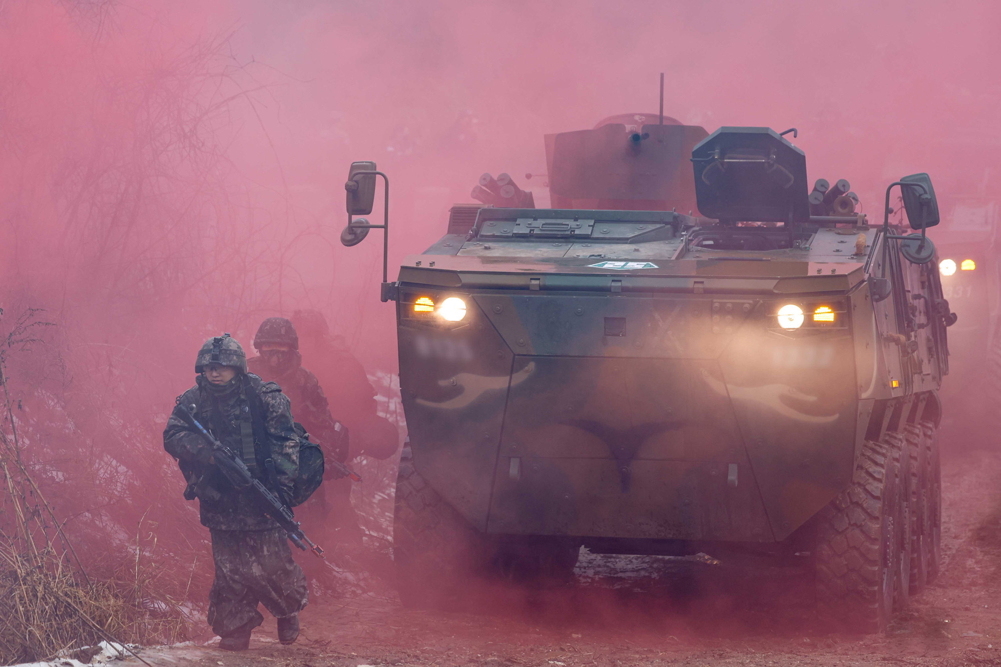 13일 경기 파주 무건리훈련장에서 열린 '아미타이거 시범여단 연합훈련'에서 육군 아미타이거 시범여단 대원들이 분대 전술훈련을 하고 있다./2023.01.13 사진공동취재단