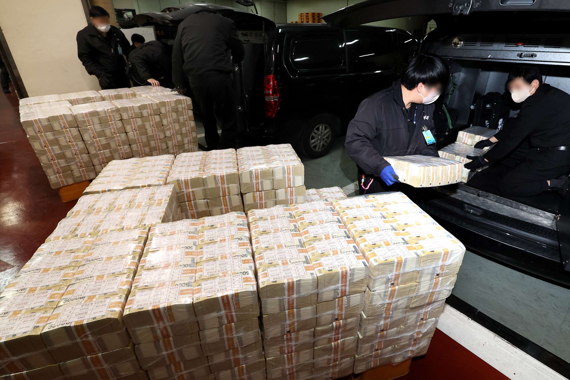 직원얼굴 모자이크필수. 16일 오전 서울 강남구 한국일보 강남본부에서 설 화폐공급이 진행되고 있다. 사진공동취재단