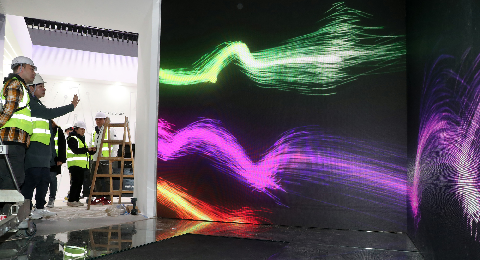 | 사진설명 | 24일(현지시간) 스페인 바르셀로나 피라 그란 비아 전시장에서 KT 관계자들이 ‘모바일 월드 콩그레스(MWC 2023)’ 부스 설치 작업을 하고 있다. 세계 최대 모바일 기술 박람회인 MWC는 오는 27일 개막해 다음달 2일까지 나흘간 열린다. 2023.02.24/바르셀로나=사진공동취재단 |