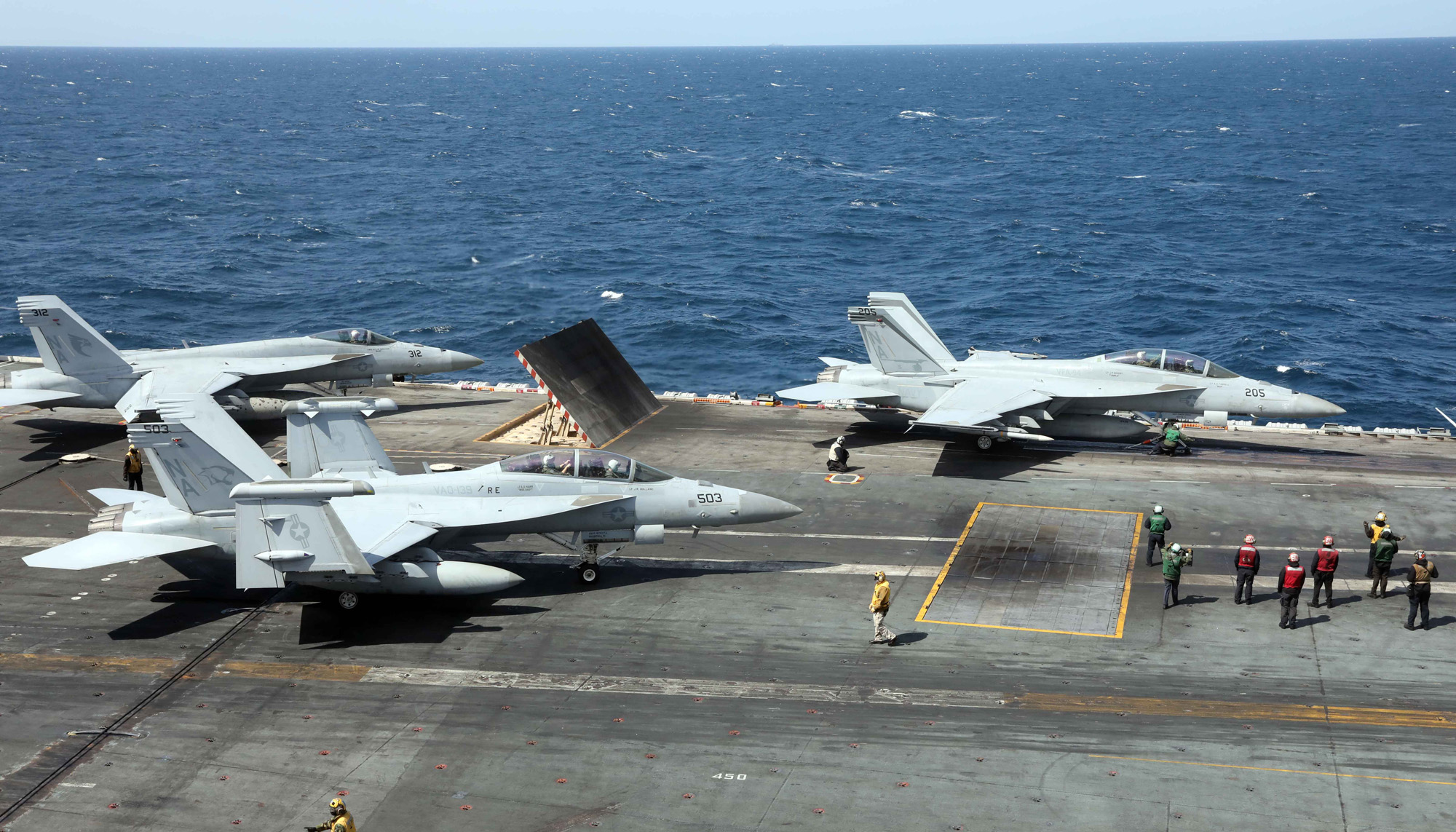 | 사진설명 | 한미 해군 연합 해상훈련이 열린 27일 제주 남쪽 공해상에 진입한 미 핵추진 항공모함 '니미츠'(CVN 68·10만t급)에서 F/A-18F 슈퍼호넷 이함 훈련이 진행되고 있다. 길이 332.8m, 폭 76.8m, 승조원 5500~6000명 규모인 니미츠함은 F/A-18F 슈퍼호넷 등 전투기와 E-2C 호크아이 조기경보기, 수송기, 헬기 등 각종 항공기 90여 대을 탑재할 수 있는 것으로 알려졌다. |