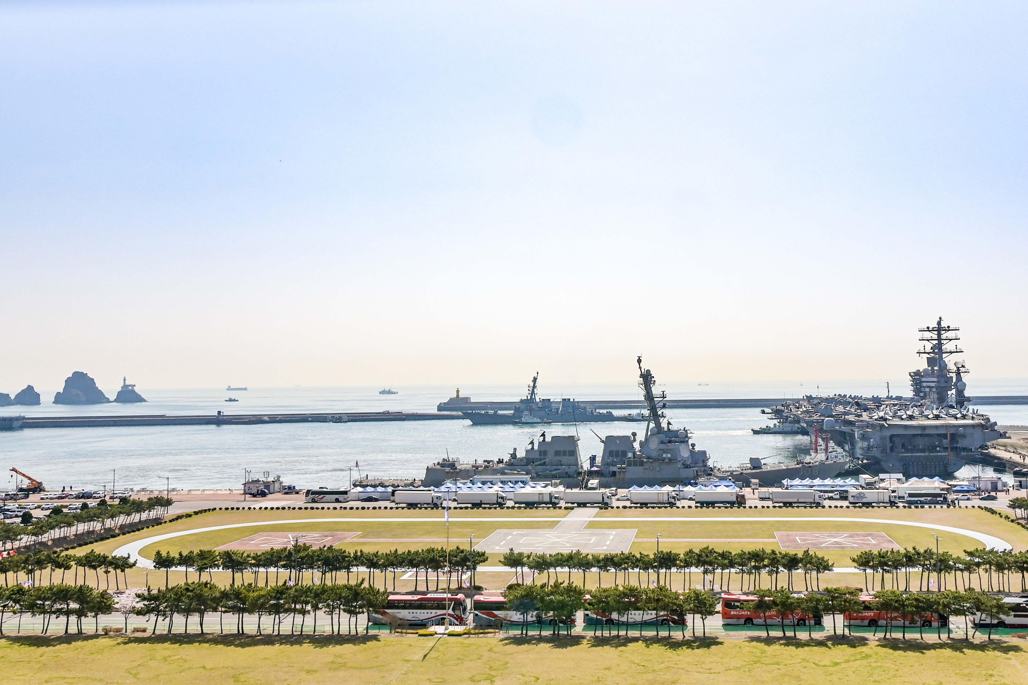 28일 부산작전기지에 미국 해군 원자력추진 항공모함 니미츠(nimitz/CVN-68)함이 입항하고 있다.