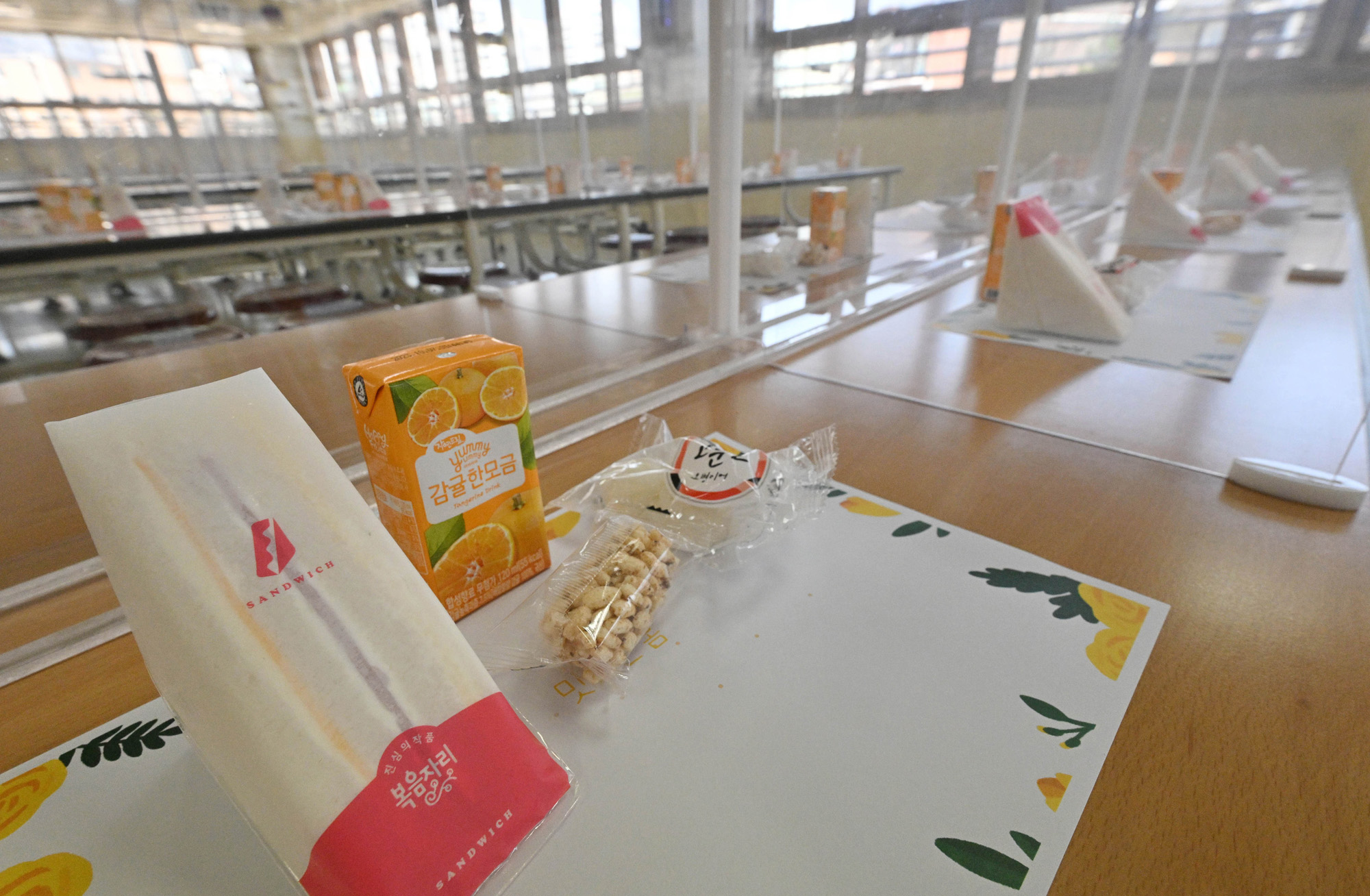 학교 비정규직 노동자들이 총파업에 돌입한 31일 서울의 한 초등학교에 학생들 대체급식이 준비되어 있다. 2023.03.31. 사진공동취재단