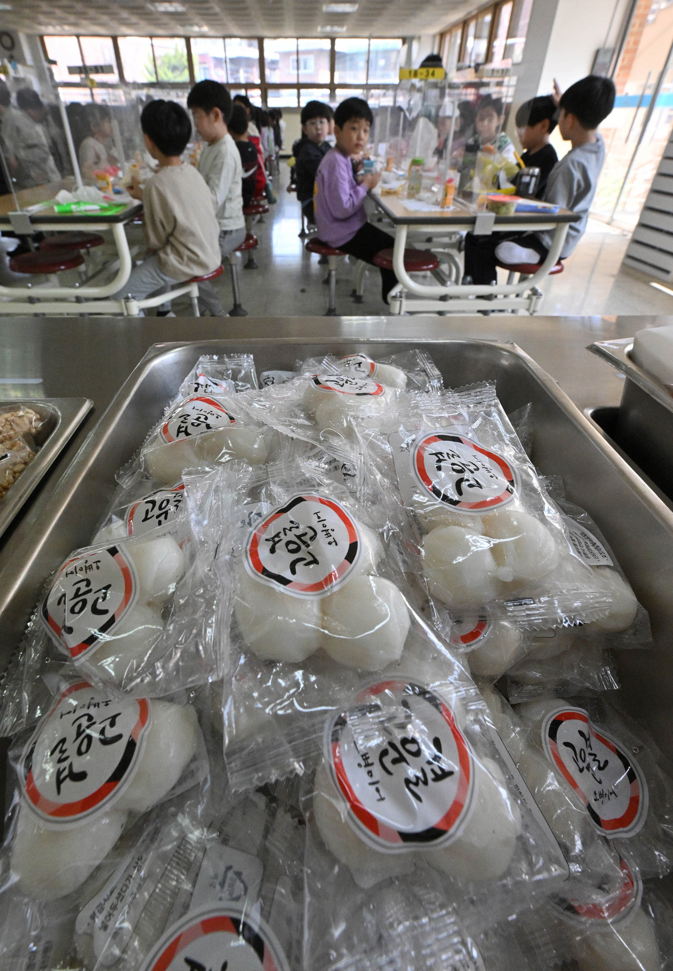 학교 비정규직 노동자들이 총파업에 돌입한 31일 서울의 한 초등학교에서 학생들이 대체급식을 먹고 있다. 2023.03.31. 사진공동취재단