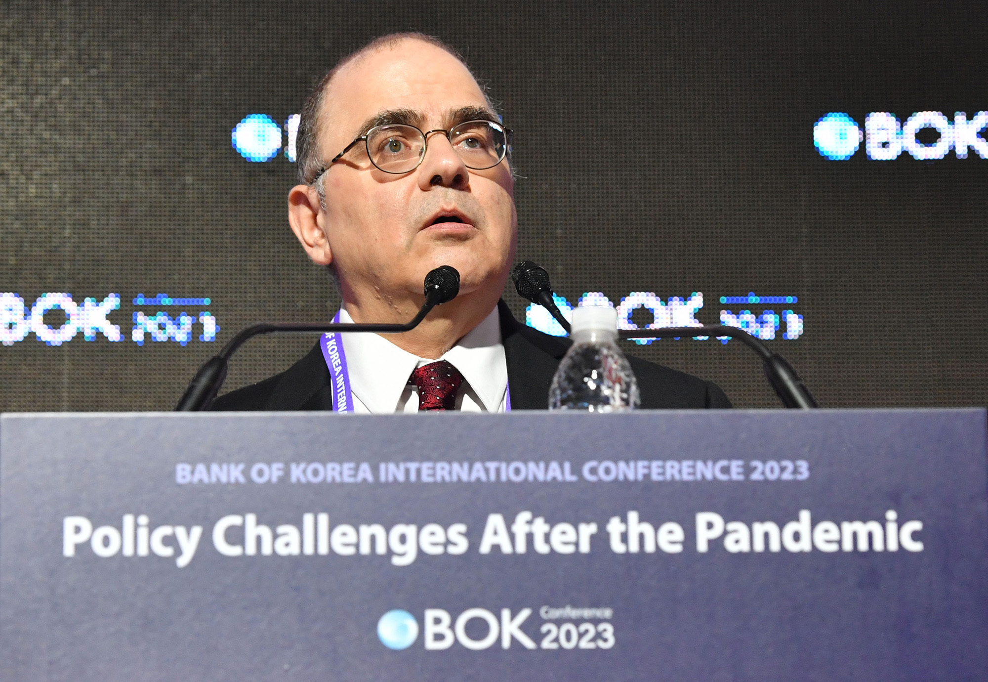 나라야나 코처라코타 교수가 1일 오전 서울 중구 한국은행 별관에서 '팬데믹 이후의 정책과제(Policy Challenges After the Pandemic)'라는 주제로 열린 2023년 BOK 국제컨퍼런스에 참석해 기조연설을 하고 있다. 2023.06.01. 사진공동취재단