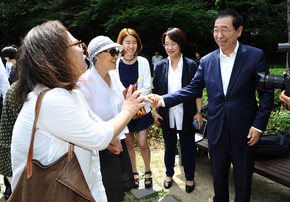 박원순 시장은 29일 오전 10시30분 남산공원 통감관저터에서 열린 <일본군 위안부 기억의 터 기공식>에 참석했다. 서울시 제공