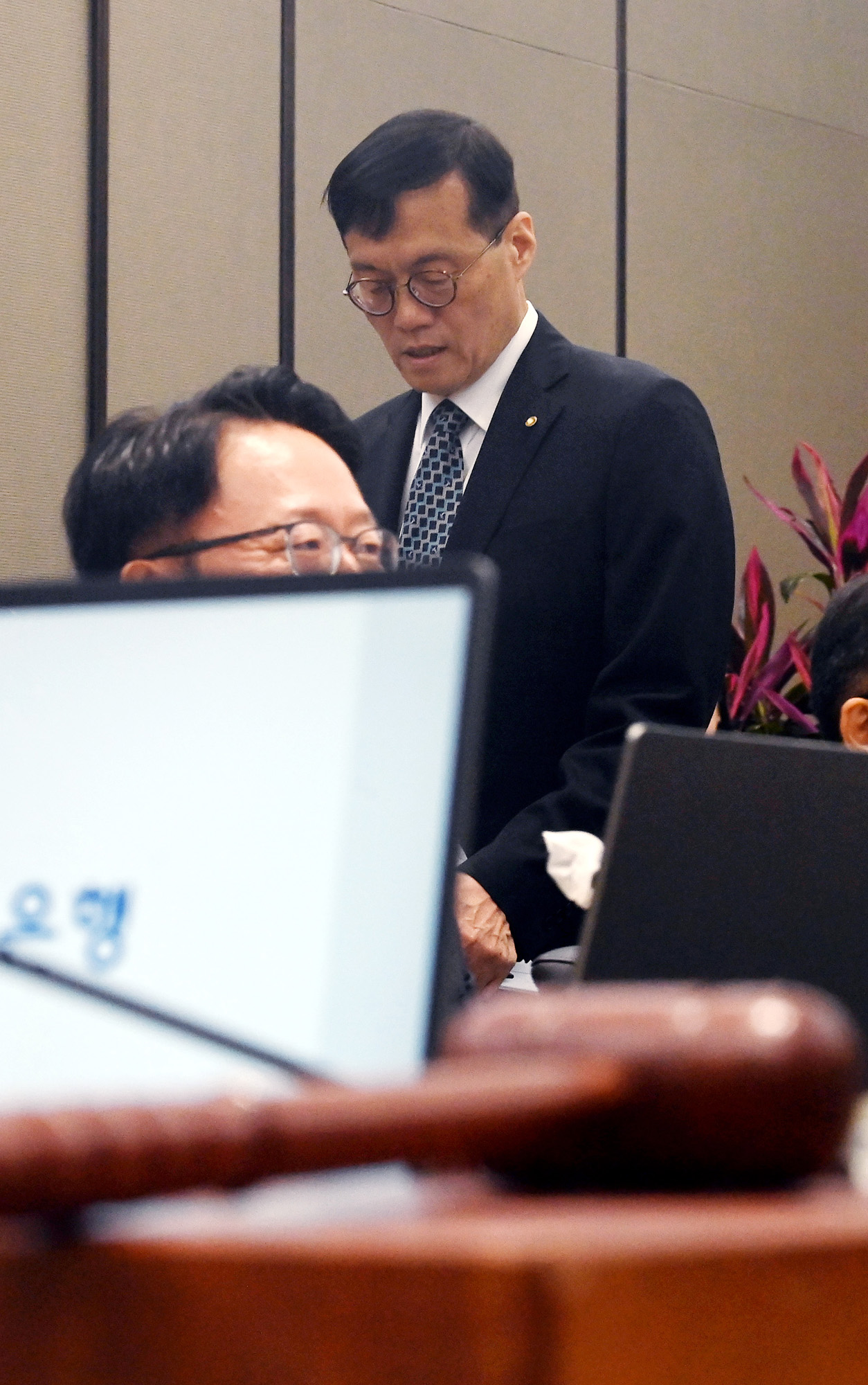 이창용 한국은행 총재가 13일 오전 서울 중구 한국은행에서 금융통화위원회 본회의를 주재하기 위해 입장하고 있다. 2023. 07. 13. 사진공동취재단