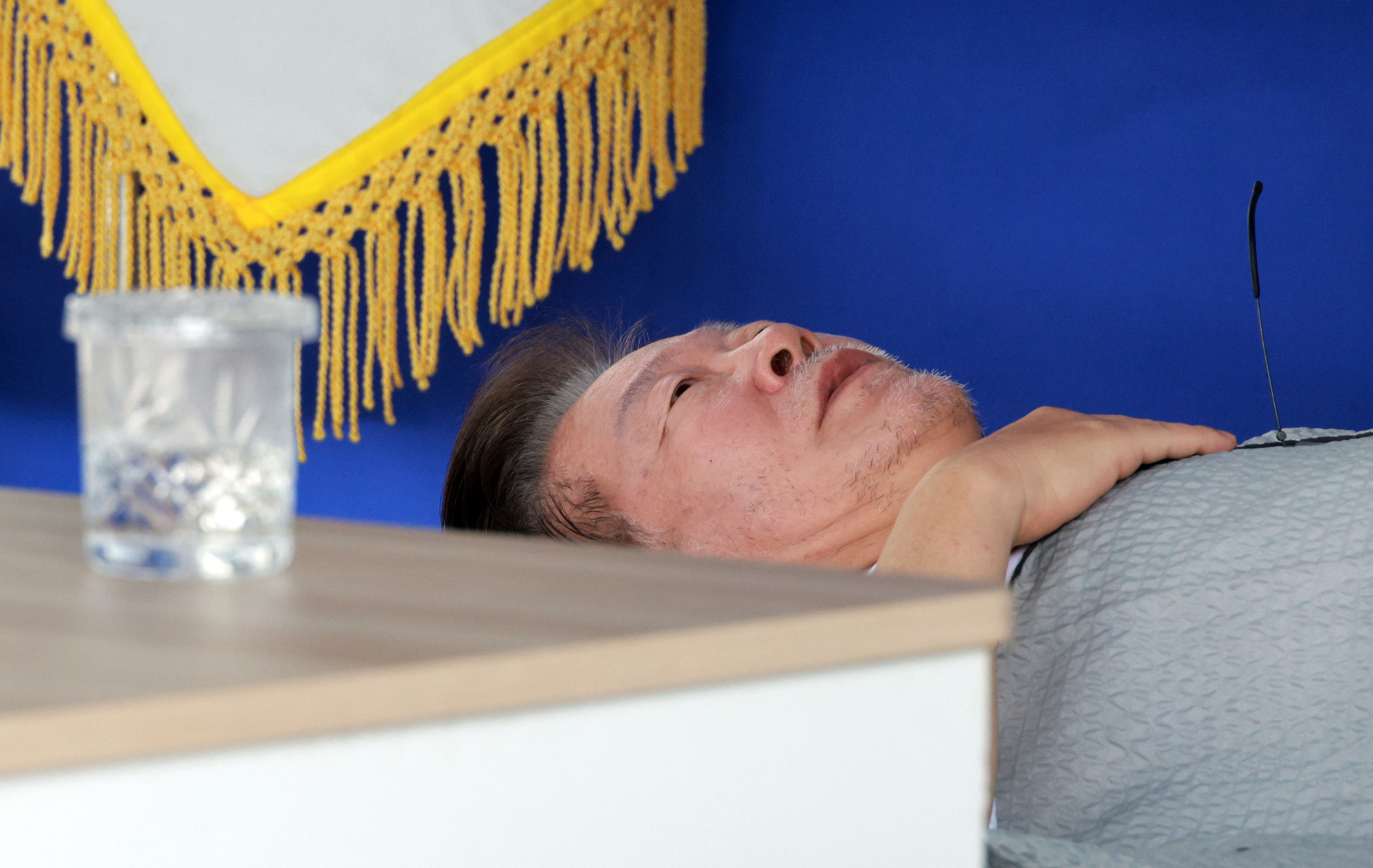 단신농성을 12일째 이어가고 있는 더불어민주당 이재명 대표가 11일 오전 국회 앞 천막에 누워있다. 2023.9.11