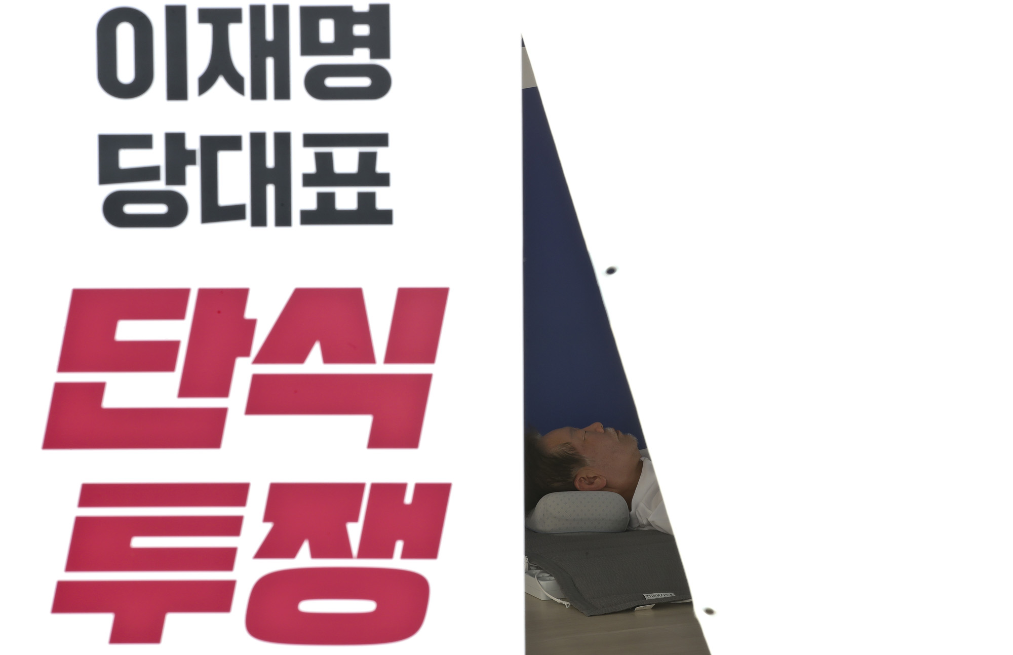 단식을 12일째 이어가고 있는 더불어민주당 이재명 대표가 11일 서울 여의도 국회 본관 앞 천막농성장에 누워있다.