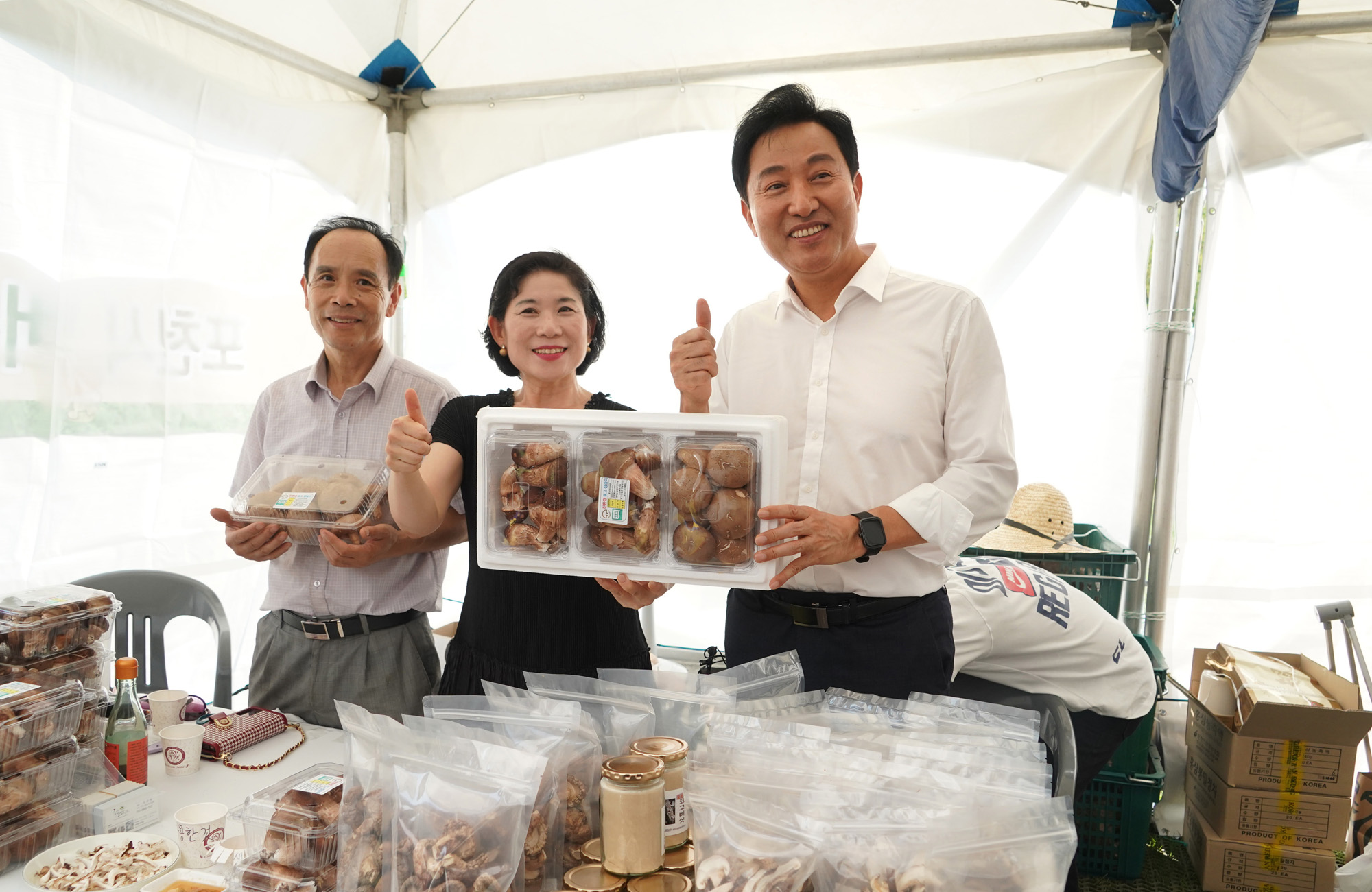 오세훈 서울시장이 11일 오후 서울광장에서 4년 만에 대면으로 열린 '추석 농수특산물 서울장터' 개막행사에 참석하고 있다. 서울시 제공