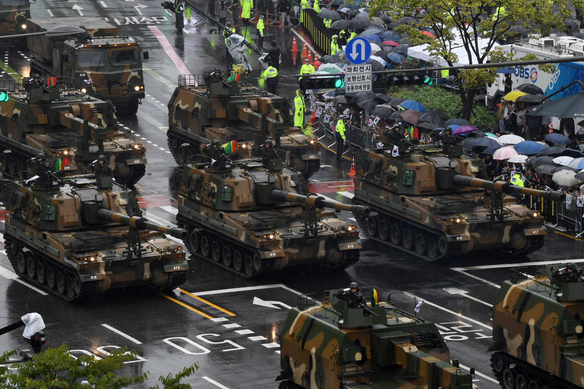 건군 75주년 국군의 날 기념행사가 26일 오후 서울 중구 덕수궁 일대에서 진행되는 가운데 군 장비부대와 군장병들이 시가행진을 하고 있다. 2023.09.26 사진공동취재단