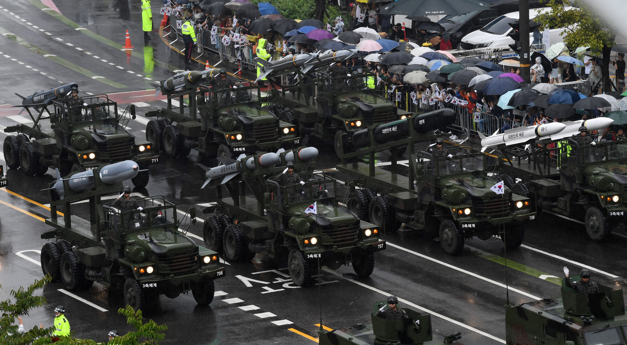 건군 75주년 국군의 날 기념행사가 26일 오후 서울 중구 덕수궁 일대에서 진행되는 가운데 군 장비부대와 군장병들이 시가행진을 하고 있다. 2023.09.26 사진공동취재단
