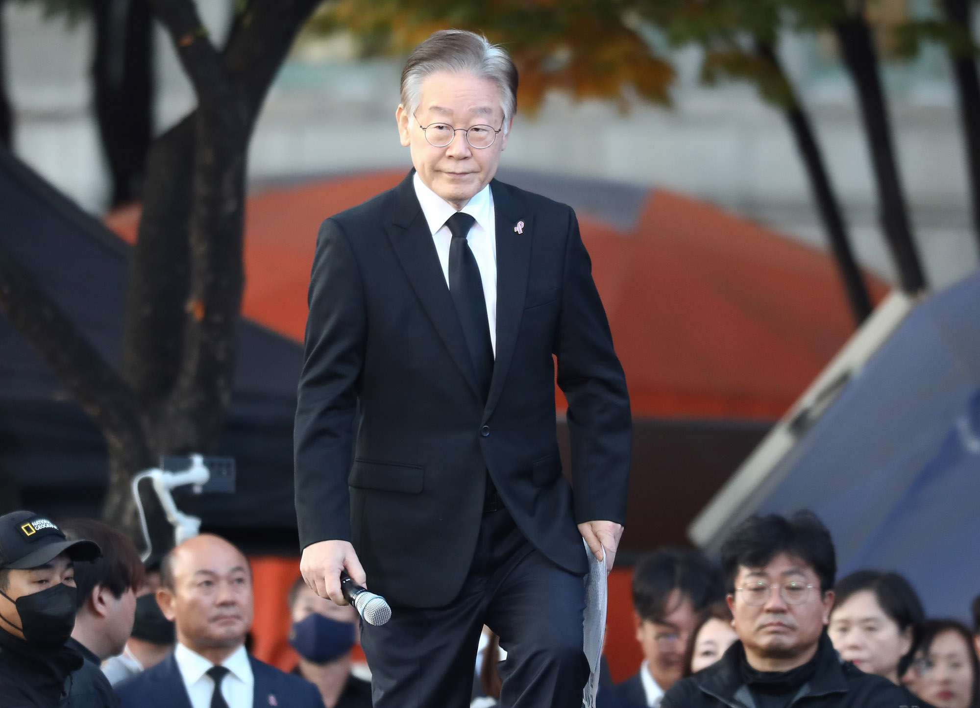 더불어민주당 이재명 대표가 29일 오후 서울 중구 서울광장에서 열린 이태원 참사 1주기 시민추모대회에서 추모사를 위해 이동하고 있다. 2023.10.29 사진/임준선기자