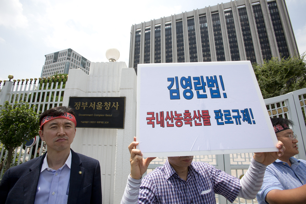 [서울=eoimage] 임준선기자 = 22일 서울 세종로 정부서울청사 앞에서 한국농축산연합회원들이 과잉규제 철폐촉구 농축수산인 기자회견을 하고 있다.