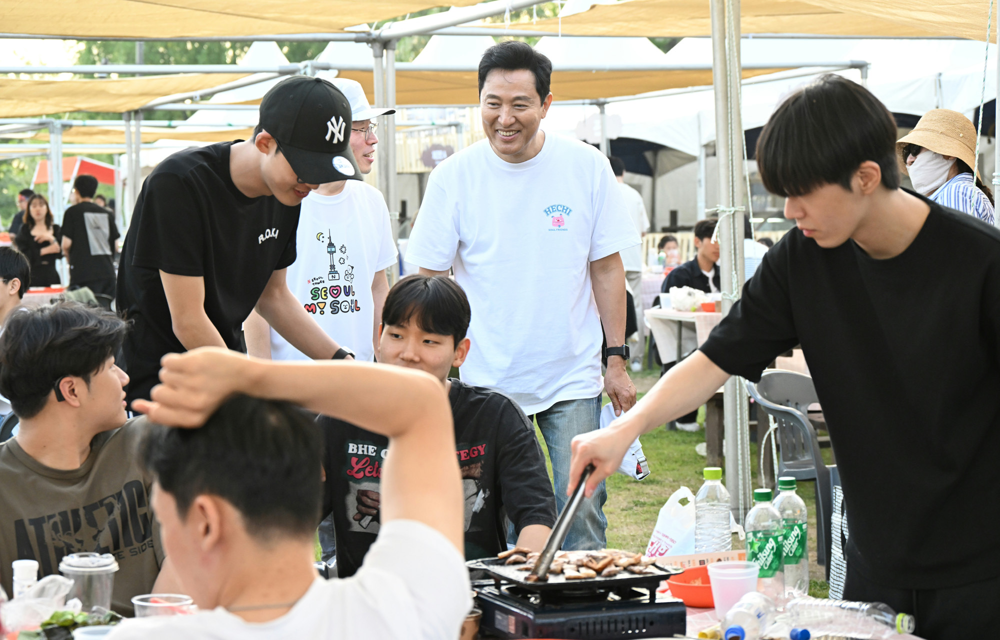 오세훈 서울시장이 4일 서울 마포구 노을공원에서 열린 서울 고기굽굽 피크닉을 찾아 행사장을 둘러보고 있다. 서울시 제공