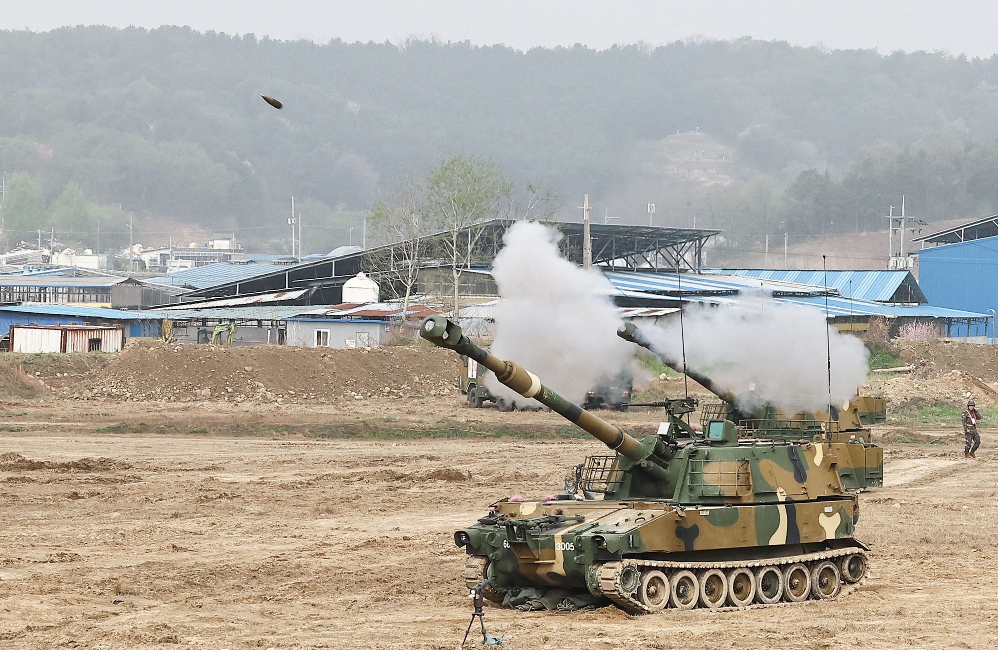 | 사진설명 | 17사단 소속 K55A1 자주포가 17일 강원도 철원군 문혜리사격장에서 열린 '수도군단 합동 포탄사격훈련'에서 실사격 훈련을 하고 있다. 이날 훈련에는 K9 및 K55A1 자주포 30문과 17사단 및 수도포병여단, 해병2사단 장병 430여 명이 참가했다. 2024.04.17 사진공동취재단 |