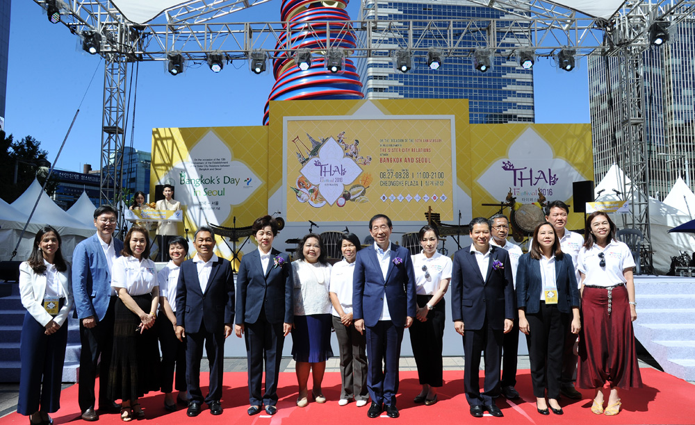 박원순 서울시장 27일 오전 서울 청계광장에서 열린 서울-방콕 자매결연 10주년 기념 방콕의 날 개막식에서 발언을하고 있다. 서울시 제공