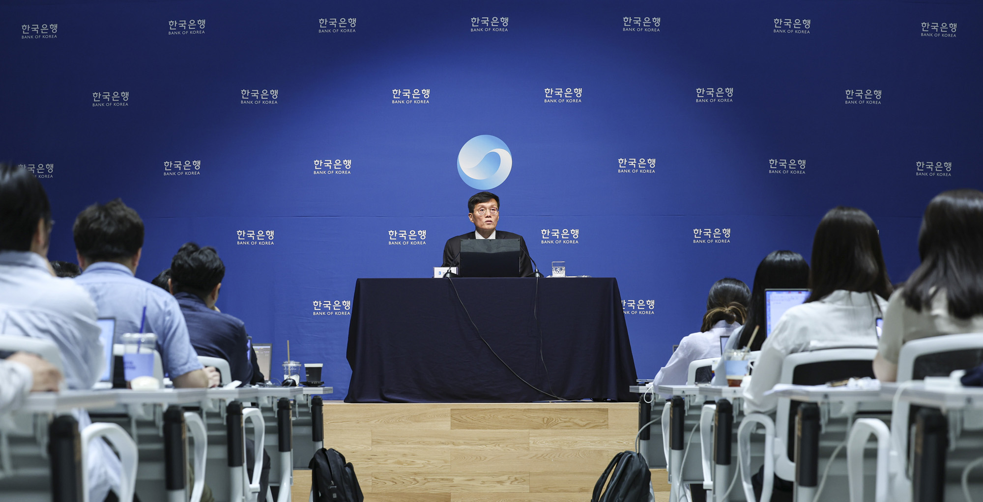 이창용 한국은행 총재가 23일 서울 중구 한국은행에서 열린 통화정책방향 기자간담회에서 모두발언을 하고 있다. 2024.05.23 사진공동취재단