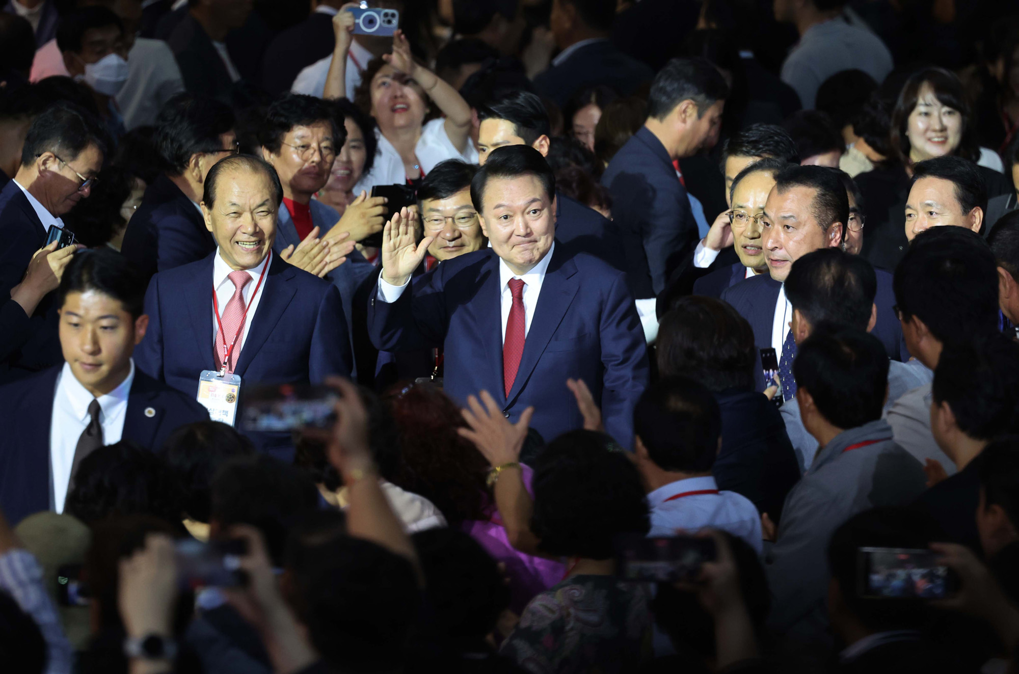윤석열 대통령이 23일 경기 고양시 킨텍스에서 열린 국민의힘 제4차 전당대회에 참석하고 있다.